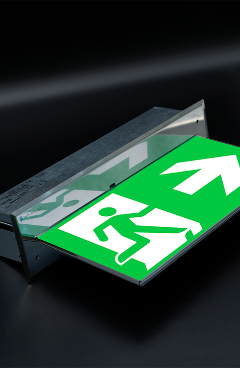 PRIMO PP is a metal recessed luminaire designed for precise marking of evacuation routes in elegant and modern interiors. Its discreet installation preserves clean ceiling lines and maintains aesthetic coherence throughout the space. High-quality construction is combined with practical features — the pictogram is visible from 30 meters, and single- or double-sided configurations provide full functionality and safety. The luminaire is ideal for architectural projects where compliance with standards, design, and attention to detail are equally important. PRIMO PP has been recognized at prestigious Light Fairs, confirming its quality and industry acclaim.