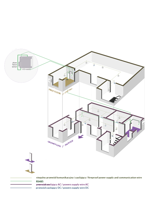 Zasilanie, sterowanie i monitorowanie obwodów oraz opraw awaryjnego oświetlenia ewakuacyjnego w obiektach użyteczności publicznej.