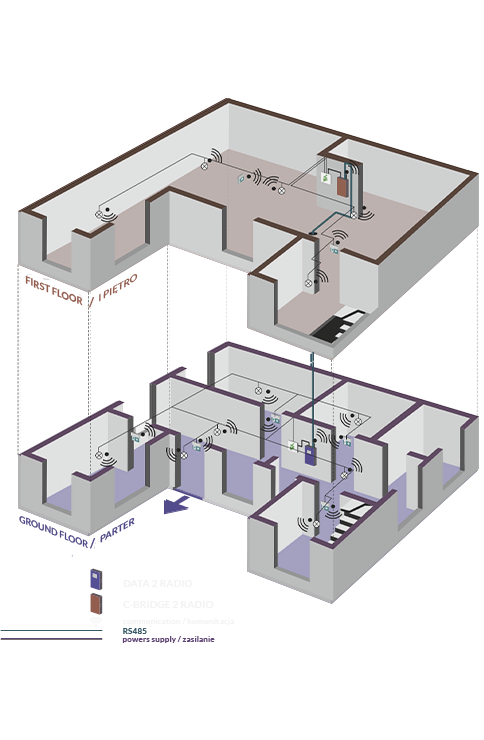 System DATA 2 RADIO to zaawansowane rozwiązanie do bezprzewodowego monitoringu oświetlenia awaryjnego, dedykowane dla średnich i dużych obiektów. Umożliwia centralne administrowanie systemem z jednego miejsca, dzięki czemu stan wszystkich elementów jest na bieżąco monitorowany, a bezpieczeństwo użytkowników pozostaje zapewnione nawet podczas zaniku zasilania dzięki wbudowanemu akumulatorowi. Komunikacja z oprawami odbywa się bezprzewodowo w technologii radiowej 868 MHz (Mesh), co pozwala na łatwą instalację tam, gdzie tradycyjna magistrala byłaby utrudniona lub nieopłacalna.